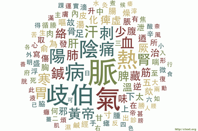 想不到由〈中國哲學書電子化計劃〉內先秦兩漢的欄目《醫學》所製作出來的文字雲會是這樣!其原理是出現頻率越多的字,字的體積就會變得越大。 http://ctext.org/media.pl?if=gb&id=85